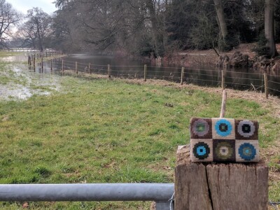 Even aan de wandel met alleen m’n mobiel bij me. Die bewaar ik in dit zelfgeborduurde hoesje.