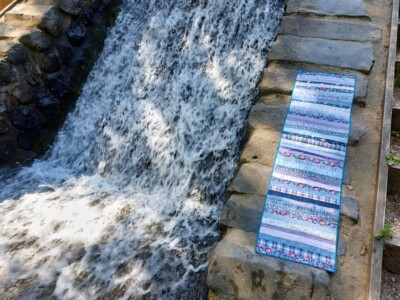 Een oud patchworklopertje meegenomen naar de waterval bij Loenen
