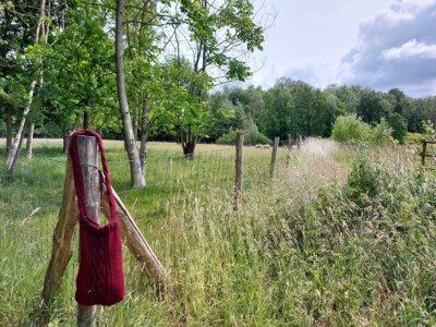 Tijdens lange wandelingen in België had ik een oude gebreide tas mee.