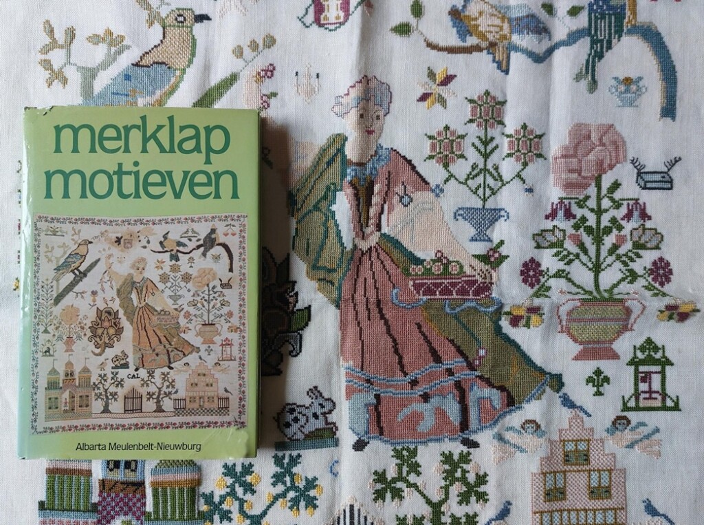 Deze week merkte ik hoe leuk ik het vind om voor m’n bezoek wat boeken tevoorschijn te halen. Ik had een ontvangst voor merklap-liefhebbers en als je dan een tijdje hebt gepraat en koffie gedronken, dan wordt al gauw duidelijk wat de specifieke interesses zijn. Ik merkte dat ik het zò leuk vond om dan snel wat boeken uit de kast te halen en die nog even voor te leggen. En eigenlijk wil ik dat nog wel vaker doen: een bepaald boek nog eens naar voren halen en er wat over doorgeven.