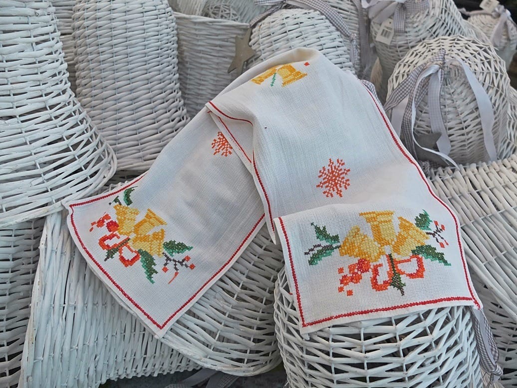De gele geborduurde klokken zijn oud en het kleedje waarop ze geborduurd zijn vertoont wat slijtplekjes. De witte rieten klokken zijn nieuw en te koop bij een tuincentrum. In de aanloop naar de viering van ‘oud en nieuw’ klinken er al heel wat harde knallen. Ik zou zeggen dat het lieflijke geluid van kerkklokken (ook vandaag op zondag) heel wat prettiger klinkt. Met deze foto (van oude en nieuwe klokken) anticipeer ik vast op “oud en nieuw”!