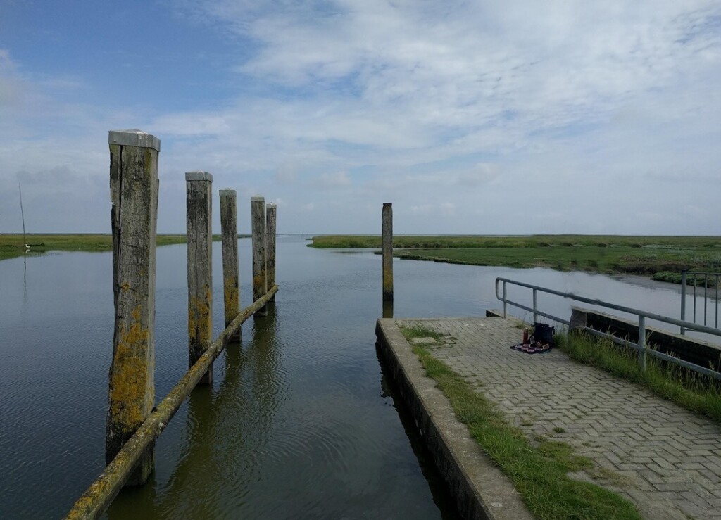 De vaargeul naar het Wad ligt open. Daarachter ligt de weidse verte. Hier is het mooi en rustig. Het is nog vroeg op de stille ochtend aan één van de uiterste puntjes van Noord-Nederland. Hier willen we een tijdje blijven en alles in ons opnemen.