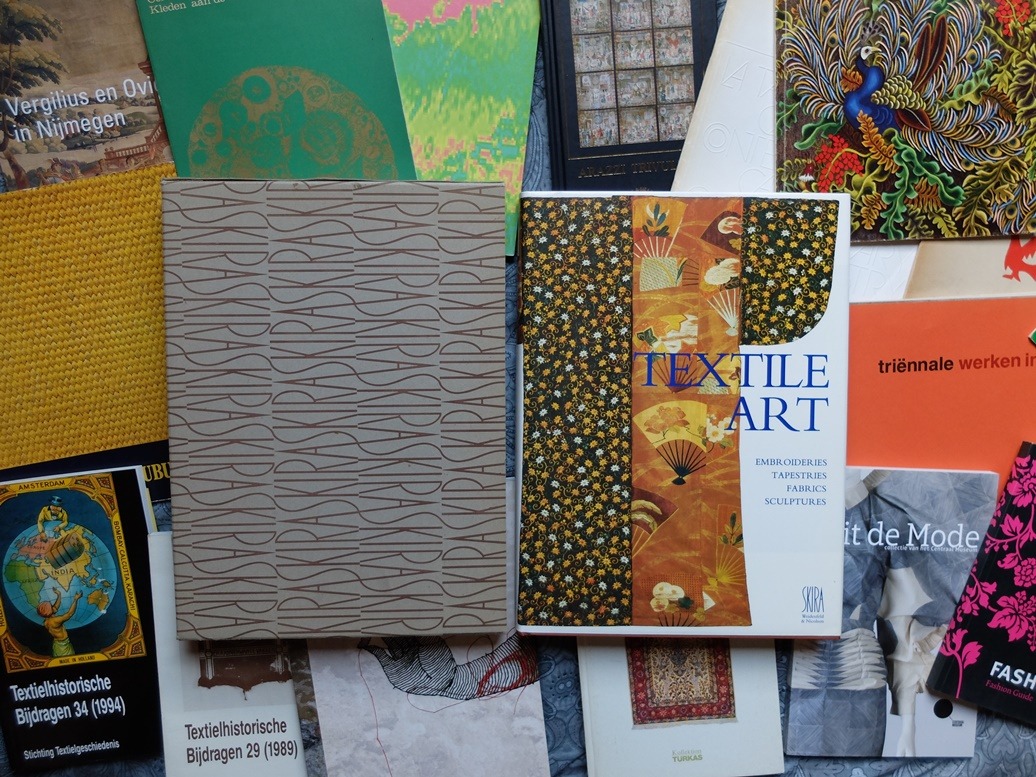 Dit boek paste niet in de lading boeken over textiele kunst die ik pas liet zien, dus krijgt het een eigen blogje. En alleen bijzondere boeken krijgen een slipcase. Hierdoor blijft het boek netjes, maar het moet ook niet àl te netjes blijven want dit is een boek om af en toe uit de kast te halen en door te bladeren, wanneer je geïnteresseerd bent in Textiele kunst. In 1962 vond in Zwitserland de eerste Internationale Tapestry Biennale plaats, waarin textile kunst uit Europa en Amerika werd getoond. Sindsdien is de aandacht voor textiele kunst uit de hele wereld toegenomen en niet alleen de aandacht maar ook de waardering.