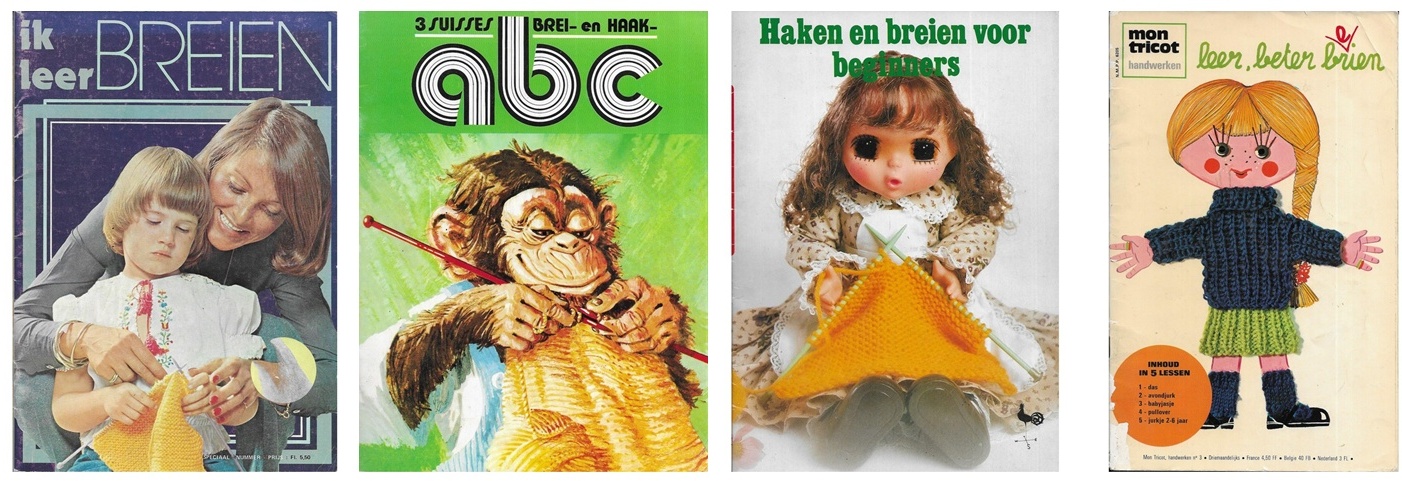 De andere boekjes nu nieuw in mijn shop; ik had ze nog niet eerder en ze maken het verhaal weer iets completer van wat er toen werd uitgegeven om kinderen te ondersteunen in het leren breien.