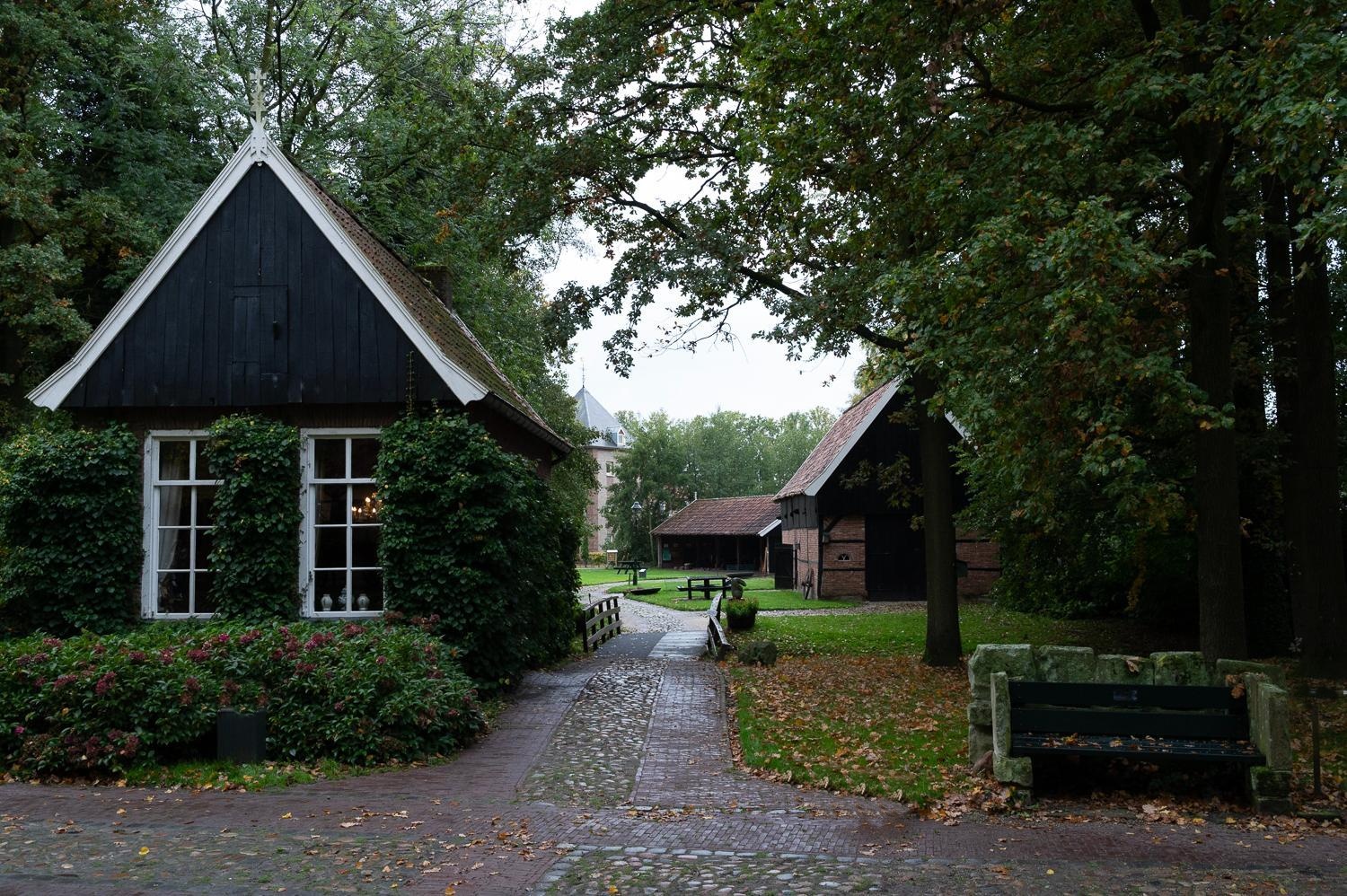 In mijn vorige blogje over bezoek aan het Openluchtmuseum in Ootmarsum schreef ik dat het motregende. Dat kun je op deze foto’s (die mijn man maakte) goed zien. De sfeer van oude dorpjes in de herfst wordt hierop nog wat realistischer.