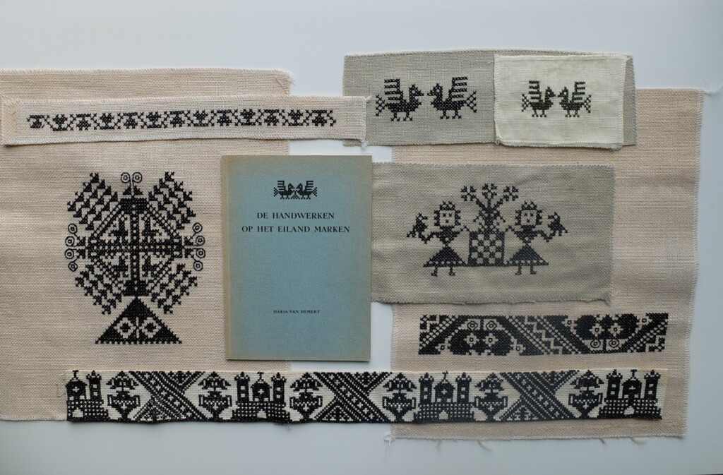 Het boek “De handwerken op het eiland Marken” is één van de eerste studies die gedaan werden naar de eigen Nederlandse handwerktradities. Maria van Hemert begon haar studie in 1943 in opdracht van het Nederlands Openluchtmuseum. De eerste druk van haar boek is nog in omloop en had ik een tijdje in huis. Ik vond het een mooi boek om wat handwerkjes uit na te maken en die legde ik op de foto voordat het boek pas op de post ging.