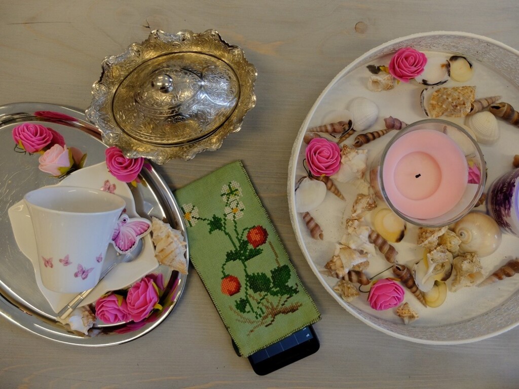 Niet zo erg als ik bij de kapper even moet wachten. Juist wel leuk eigenlijk, dan ga ik even wat schuiven met haar spulletjes. Vandaag legde ik m’n mobielhoesje op de kapperstafel. Het is al een oud hoesje en het is vroeger waarschijnlijk gemaakt en gebruikt als brilhoesje. Nu vind ik hem ideaal voor de mobiel.