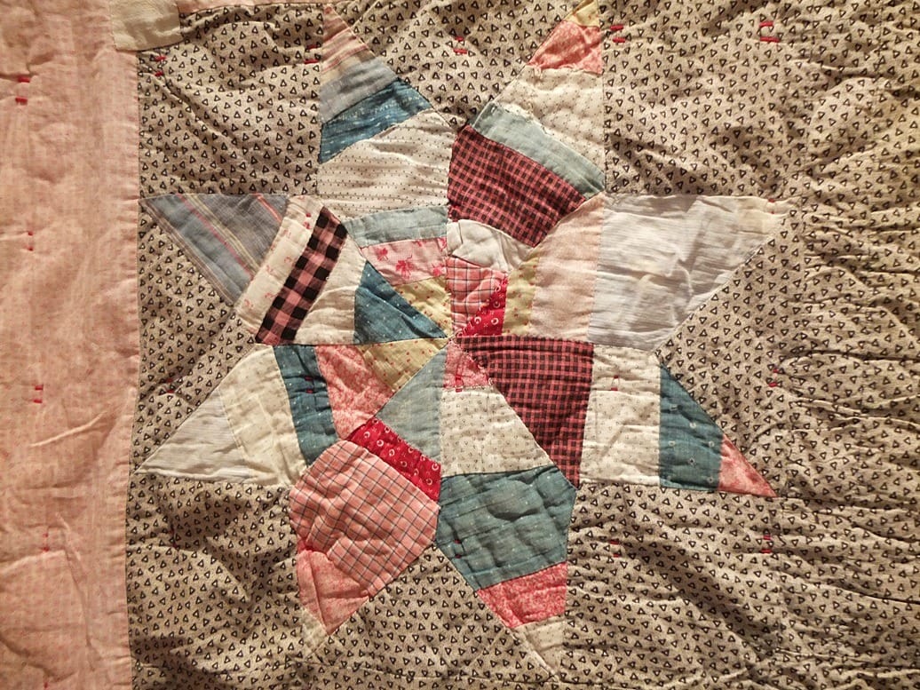 Een andere verhaallijn in het boek is het verhaal van de vrouw die ze ontdekte. Zij werd ook diep getroffen door deze quilts en de christelijke naastenliefde. Het boek is eerst in het Engels verschenen, later ook in het Nederlands. Ik las het toen het net was uitgegeven en blogde er hier over. Nu kon ik een aantal van deze veel-gebruikte en veel-betekenende quilts zelf zien. Het raakte mij en bewoog mij ertoe om de volgende dag zelf ook een quilt te geven aan mensen die er weer anderen mee helpen.