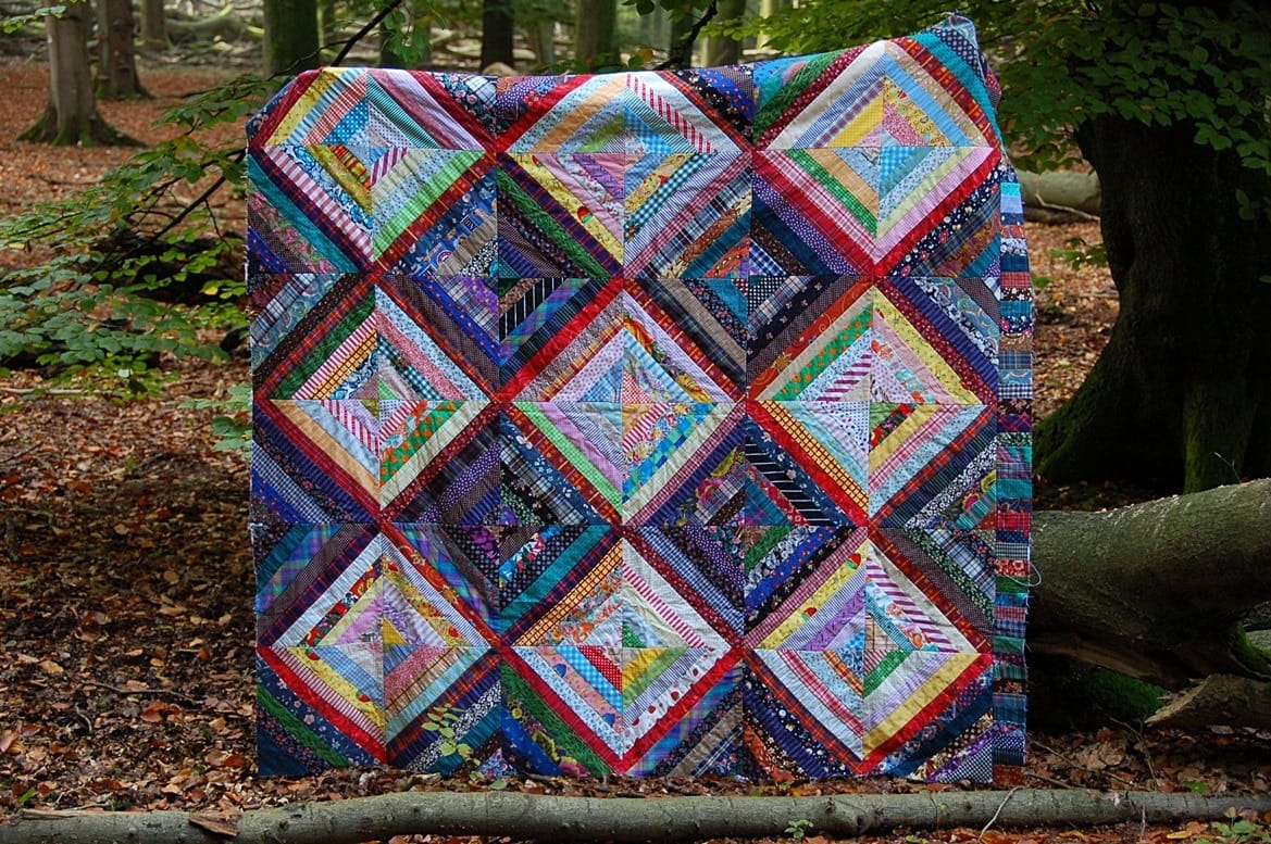Op de twaalfde van de twaalfde, maar dan precies tien jaar geleden, gaf ik deze quilt kado aan iemand die zich veel bezighield met het schrijven van boeken over de achtergrond van duistere (o.a. occulte) zaken. Ik noemde deze quilt “De werking van donker en licht” en ik vond het een mooi verjaardagskado. Korte tijd later overleed hij plotseling en kreeg ik de quilt weer terug. Deze foto was nog gemaakt vóórdat ik de quilt weggaf: de rand was nog niet af. Vandaag is het weer twaalf-twaalf. Met mijn familie denk ik terug aan die verjaardag van tien jaar geleden. Maar ook: na de twaalven is óók nog weer een dertien gekomen. De rafelranden zijn afgewerkt. Het leven gaat verder. Maar de ‘werking van donker en licht’ gaat door.