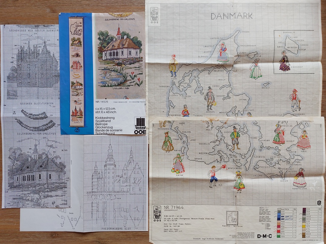 Deense handwerkboeken zijn bij ons altijd heel geliefd geweest. Vooral de kruissteekpatronen van bloemen en planten, gebaseerd op nauwkeurige botanische tekeningen, spraken velen aan. De boeken die uitgegeven werden door de Deense Handwerksfremme vonden hier gretig aftrek (en heb ik nog steeds graag in mijn shop). Deze boeken vormden eigenlijk het begin van een latere stroom van handwerkboeken die in de zeventiger jaren en daarna werden uitgegeven.