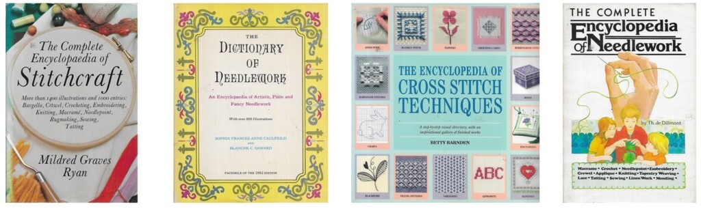 Zo was het wel eens leuk om aan de hand van een paar Engelse encyclopedieën een overzicht te geven van de prachtige uitgaven die er op het gebied van Needlecraft en Stitching zijn verschenen. Waardevolle overzichten, die de lange geschiedenis van vele technieken illustreren èn die de aloude technieken weer aantrekkelijk en toegankelijk maken voor latere generaties.
