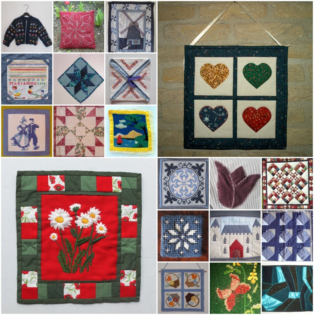 Mijn zus woonde heel lang in het buitenland en in die tijd dus zag ik haar niet zo vaak. Een paar keer maakte ik een verre vliegreis om haar op te zoeken, en dan keek ik ook altijd naar haar handwerkjes. Ik wilde dertig jaar geleden al overal foto’s maken van handwerkjes en zo verzamelde ik een fotomapje met foto’s van handwerken van m’n zus. Ik heb ook mapjes met foto’s van m’n tante en moeder en dat zijn best leuke mapjes om af en toe eens door te kijken. Voor een verjaardag van ook al weer een hele tijd geleden maakte ik eens een paar collages van die handwerkjes van m’n zus en die stuurde ik haar toe. De foto kwam ik weer tegen en overbrugt nog weer een dag naar hopelijk straks weer m’n eigen computer.