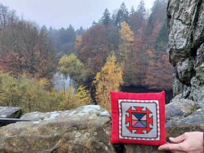 Uit een oude Margriet in 1978: “Het is al jaren geleden, dat Mies Bloch dit droogbloemenpakket voor Margriet samenstelde. Trouwe lezeressen zullen zich dat nog wel herinneren. Het boeket staat er echter nog heel fleurig bij, zoals je mag verwachten van droobloemen op een handwerk in kruisjes. Daarom brengen we dit telpatroon op veler verzoek na die tijd nòg eens. De ondergrond is een warmrood of terrakleurig handwerklinnen.