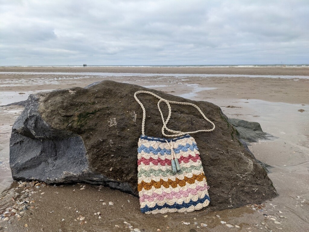 Ik had een golfjes-tasje meegenomen, in tere golfjeskleuren die precies passen bij de dag en de landsrand. Het was een mooie dag.