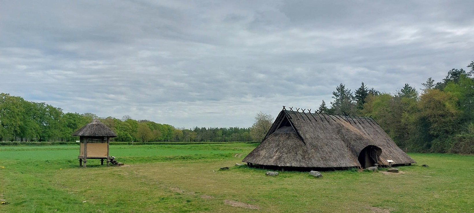 Bij een reconstructie van een boerderij uit de IJzertijd is onze eerste pauze. Hier liggen ook Celtic Fields (raatakkers) en we krijgen een beetje een idee hoe het leven hier vroeger is geweest in dit oude gebied in het midden van het land. De sporen van bewoning gaan ruim meer dan 2000 jaar terug.
