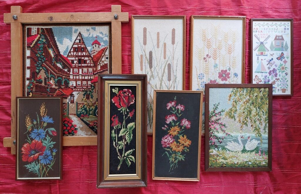 Op koningsdag liep ik op de vrijmarkt langs kramen waar soms ook borduurwerken op lagen. “Die heb ik zelf nog volop”, dacht ik, en ik kocht niks bij.