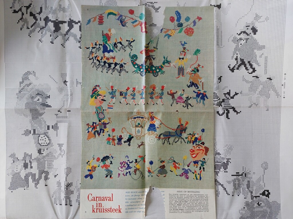 Bij elkaar laten ook deze patronen weer zien hoezeer Mies Bloch gericht was op het vastleggen in kruissteekjes van allerlei feesten en gewoonten en kinderverhalen die toen in Nederland zo vertrouwd waren. Ze was een ware kunstenares om al van alles vast te leggen in kruissteek-tafereeltjes wat toen tot de Hollandse leefwereld behoorde.