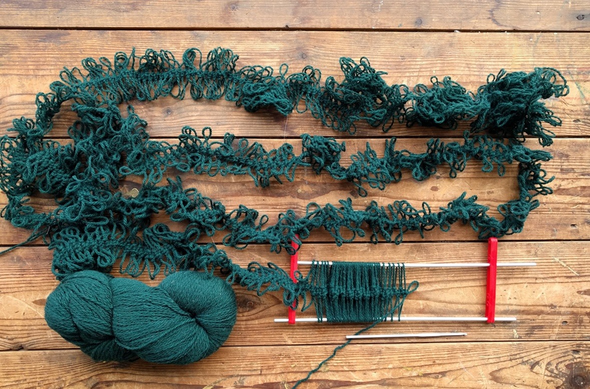 Werkje voor ’s avonds: slierten maken voor een lange sjaal. Ik heb een guimpvork gevonden en wilde die eens uitproberen. Terwijl hier het einde van een tijdperk in zicht komt vond ik zo’n infinity sjaal wel grappig. Even wat te doen voor de tussendoormomenten.