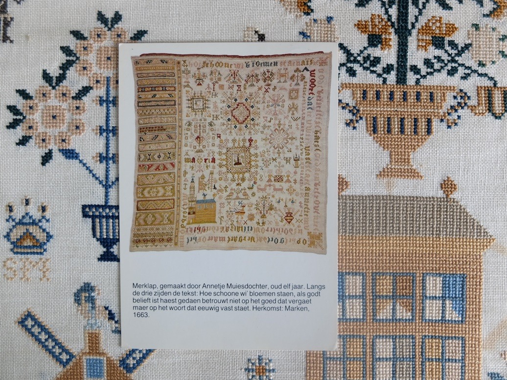 Langs drie zijden van een merklap borduurde Annetje Muiesdochter op Marken op 11-jarige leeftijd in 1663 deze wijze woorden.