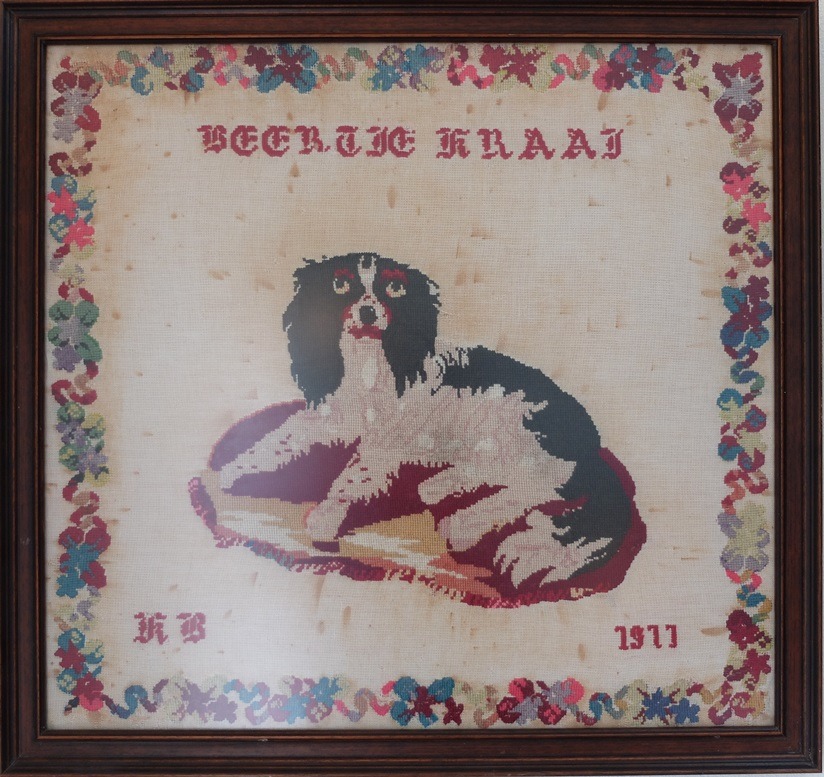 Ook in de borduurkunst was de voorkeur voor gezelligheid en lieflijkheid goed te zien. Er worden heel veel tafereeltjes geborduurd met overdadige bloemboeketten, kransen, hondjes, vogels en buiten-tafereeltjes.