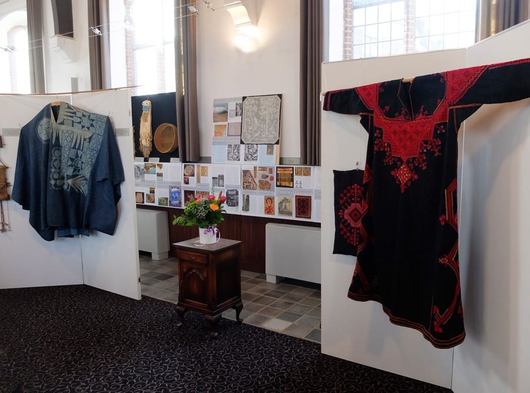 Een koningsmantel uit Nigeria en een jurk uit Saraqib hangen op prominente plekken. Deze bijzondere kledingstukken worden in het boek boeiend beschreven en ook dàn zijn ze mooi om te zien. Maar nog mooier was het om ze in het echt te bewonderen. De grote verdienste van Henriette Beukers is dat zij al decennialang aandacht heeft gevraagd voor handgemaakt textiel uit andere landen. Zij was een voorloper in het wijzen op de schoonheid van wat er in andere culturen werd gemaakt èn dat dichtbij haar leespubliek te brengen. Deze tentoonstelling was voor mij daarin ook een top-voorbeeld van dat talent. De prachtige kledingstukken en handwerken en het schitterende textiel waren héél dichtbij het publiek gebracht. Het was haast intiem, om dit van zo dichtbij te mogen aanschouwen, in dat mooie oude kerkje.