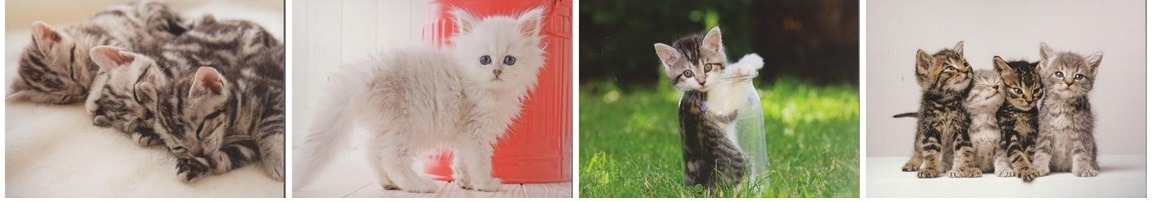 Kennissen in de buurt hadden een nest jonge poesjes en een paar keer ging ik op bezoek en probeerde die krieoelende katjes te fotograferen. Moeilijk! Dat lukte me niet zo om daar een paar mooie foto’s uit te krijgen. Met extra interesse bestudeerde ik daarom deze set kaarten waarop poezen op hun mooist zijn fotografeerd. Zo schattig! Als je weet hoe moeilijk het is om die schatjes/katjes zo voor de lens te krijgen, dan zijn die kaarten nog mooier! Ik kocht er een heleboel want ik heb er een plannetje mee. Een paar weken geleden schreef ik op een blogje dat ik bij een bestelling graag aan groen vogelmapje bij wil sluiten. Die mapjes krijg (of kreeg) je gratis bij een velletje vogel-postzegels. Maar het mapje weegt wel 60 gram en soms komt een patroon of tijdschrift wat ik wil opsturen (en waar ik het mapje bij wilde doen) daardoor nèt weer in een andere tariefgroep. En dat is dan ook weer niet de bedoeling.