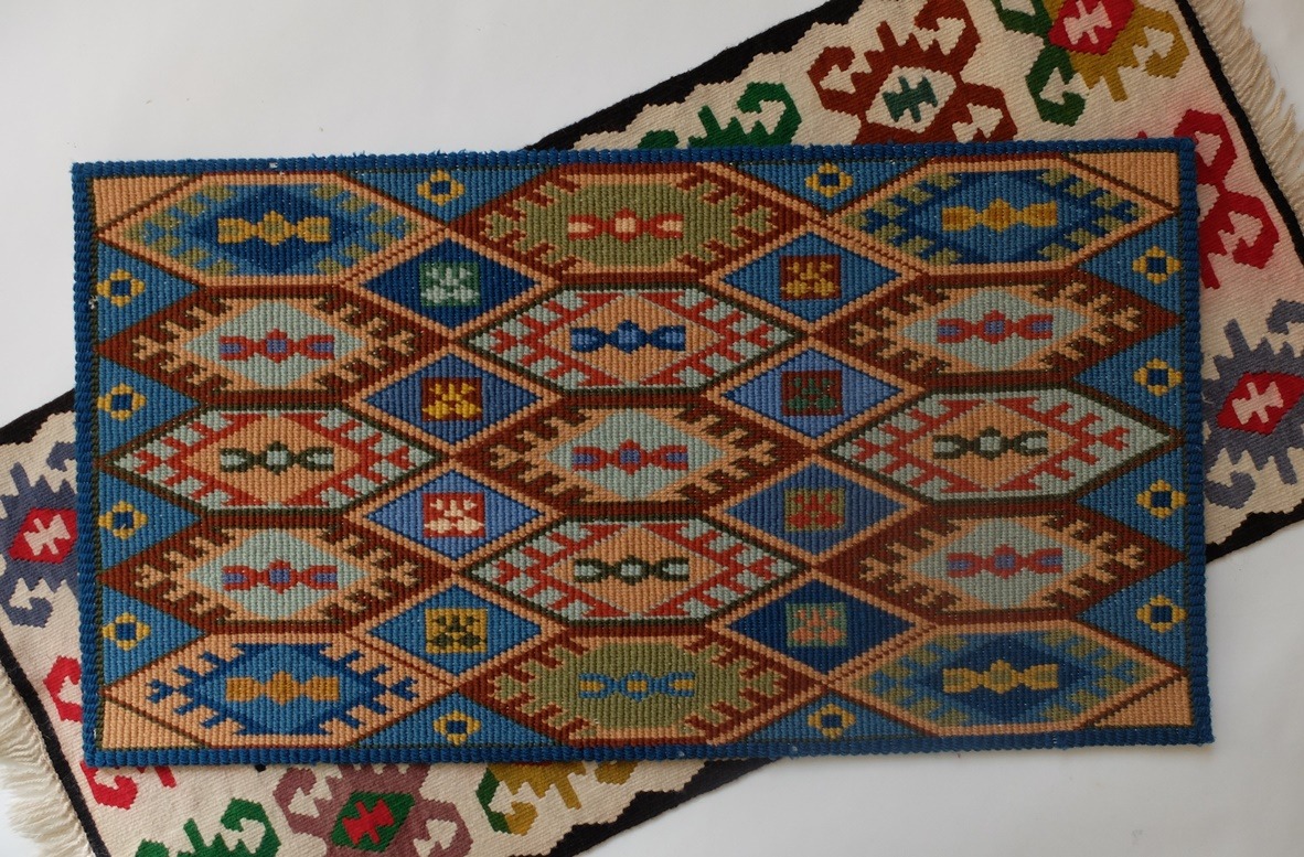 Voor wie iets heel moois in de kamer wil: deze fraai geborduurde wand-decoratie. Het is een groot borduurwerk (bijna zo groot als een tapijtje) wat op hardboard is gespannen. We hebben ervaring met dit mooie object: het duurt zéker vijf jaar voordat je erop uitgekeken raakt!