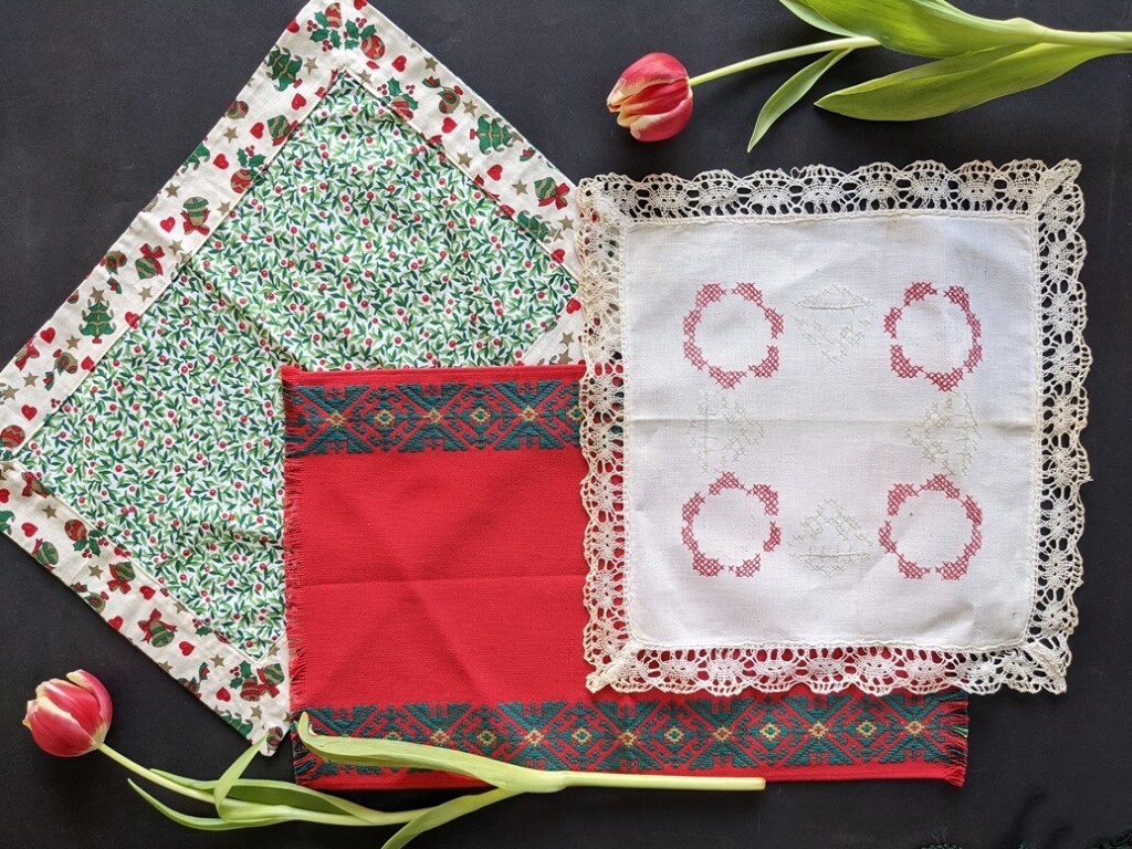 De andere kleedjes die ik in de kersttijd liet zien, heb ik nu ook in m’n shop geplaatst. Een kleedje van stof, een kleedje met doorgeregen randen, en een geborduurd kleedje met gekloste rand. De diversiteit om met handwerk een leuk kleedje te maken is groot!