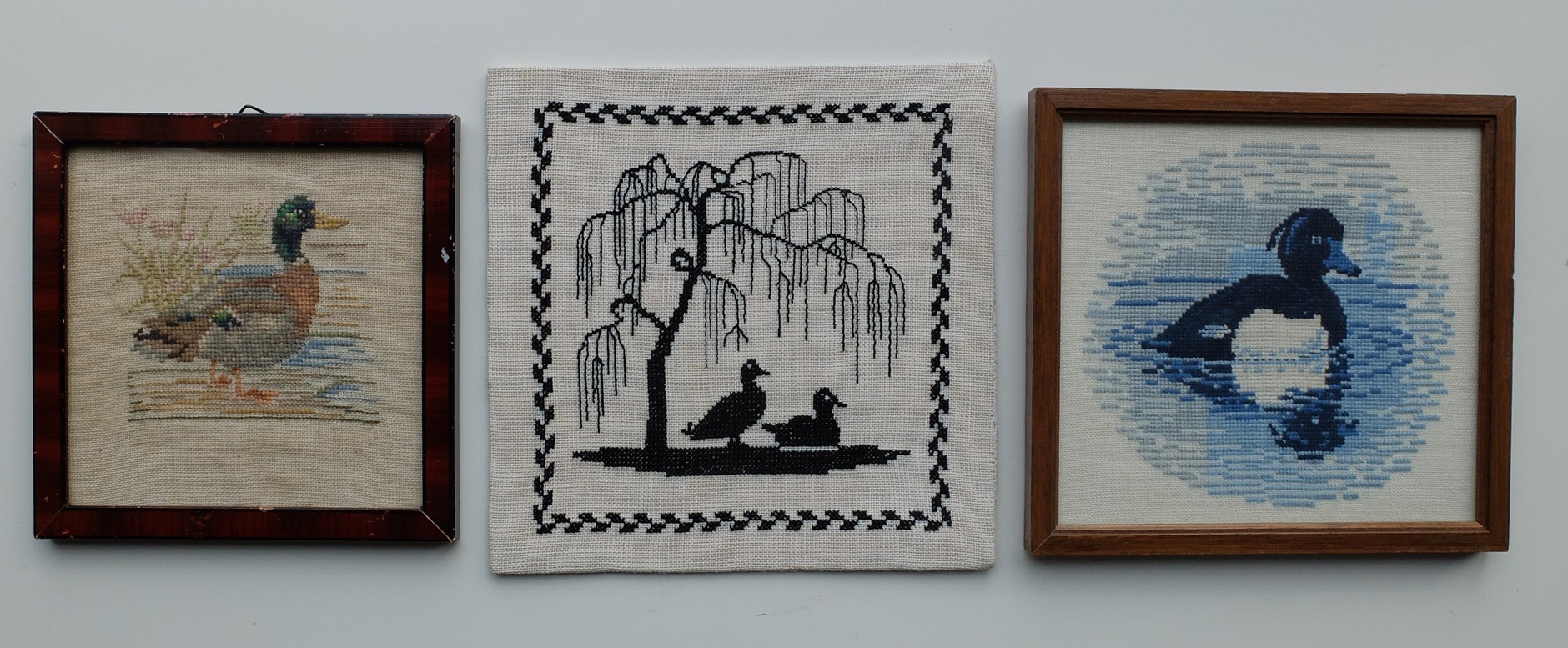 1. Ik heb een kieviet die uit dezelfde serie moet zijn, ook zo ingelijst gevonden en daarna op een kussen genaaid. Leuk, om zo onverwacht een broertje te zien. Ben benieuwd of er nog andere zijn. Lief kuifeendje trouwens! We zijn anders wel toe aan kievieten, al zingt net een heggemus op 3 m. afstand zijn longetjes uit zijn lijf: die heeft het voorjaar al in zijn hoofd. Hij is niet de enige: in de verte zingt een vink. Prettige zondag!