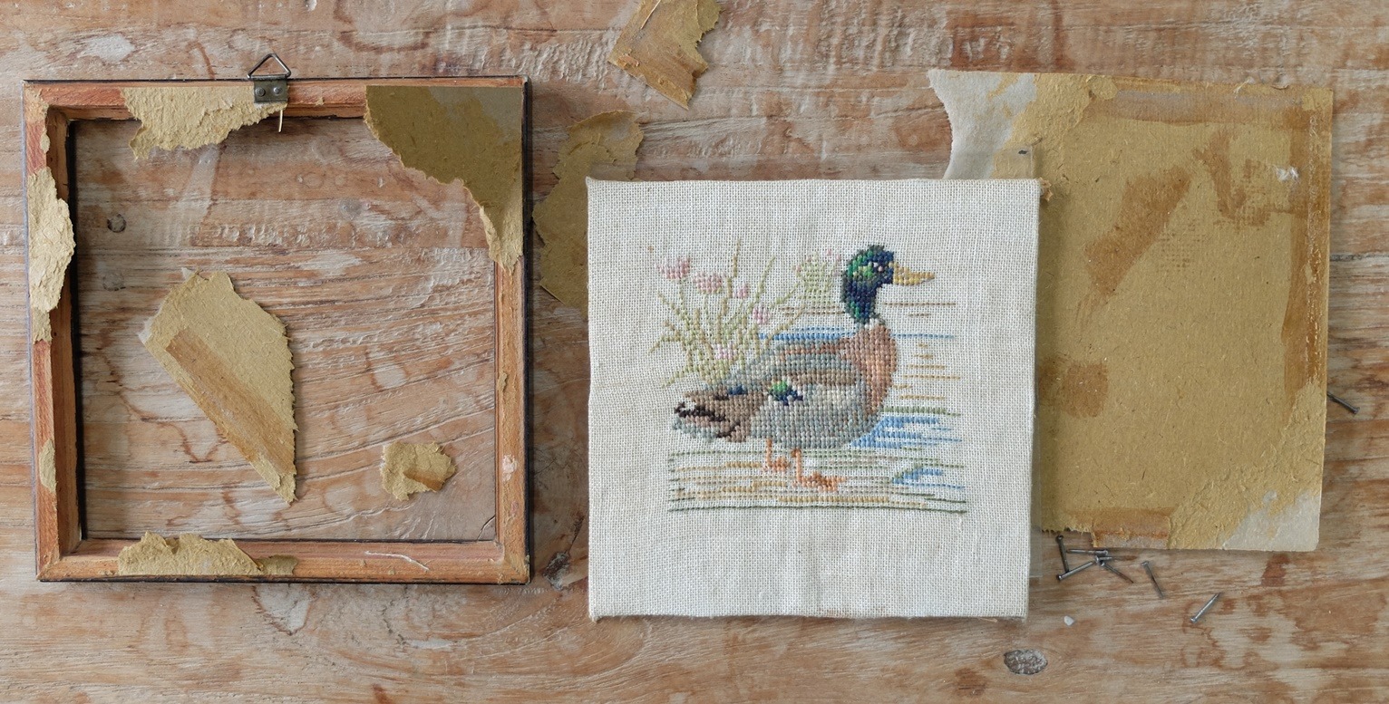 Dit geborduurde eendje werd besteld en iemand vroeg of ik het even los wilde maken. ‘Krak’ dus.