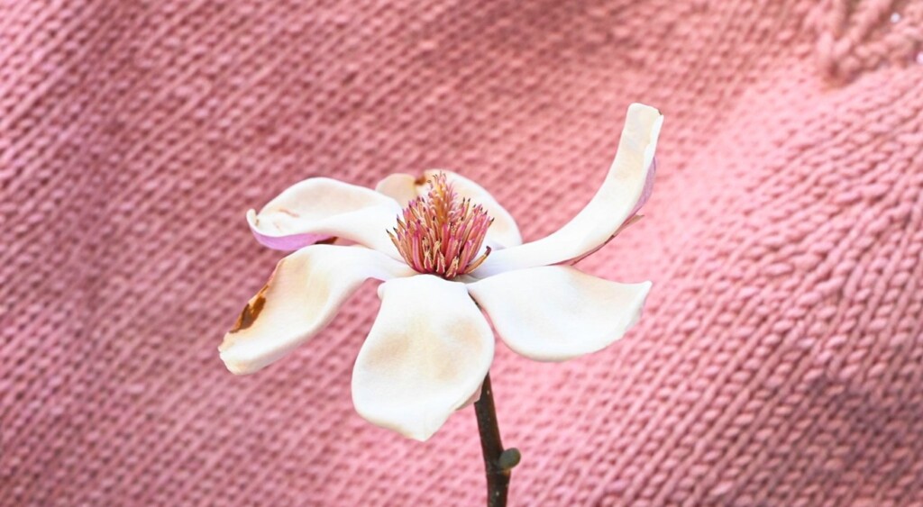 Nu is het truitje af en zijn de takken alweer uitgebloeid. Het lijkt me wel een goed idee om de laatste foto dan maar moet maken als de magnolia’s buiten ook in bloei staan. Dan ga ik er wel bij staan als ik het truitje draag.