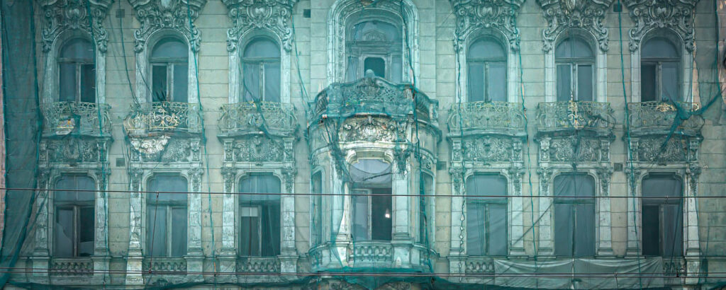 Door in te zoomen op gebouwen krijgen de vormen van bogen en ramen alle aandacht en worden structuren en vormgeving geaccentueerd.