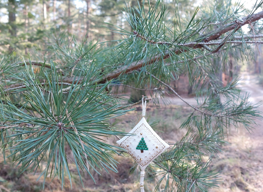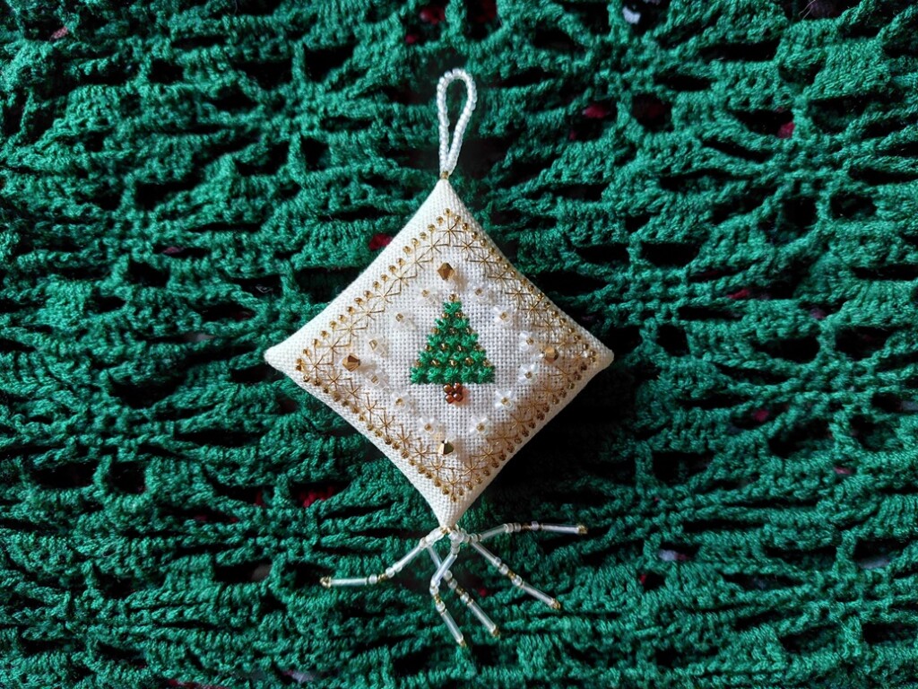 Een klein kussentje met een mooi hoopvol boompje met stralende kraaltjes.