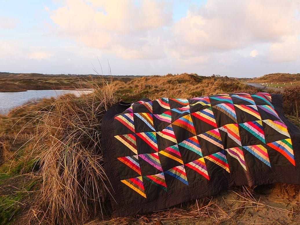 Het licht nà een storm kan zo prachtig zijn! Twee weken geleden waren wij een weekend op een eiland en op maandagmorgen moesten we eigenlijk inpakken om de boot te halen om terug te gaan. Maar dat licht…. onweerstaanbaar! Ik besloot nog snel de weg over te steken en nam twee quilts mee om te fotograferen in de duinen. Deze quilts zijn