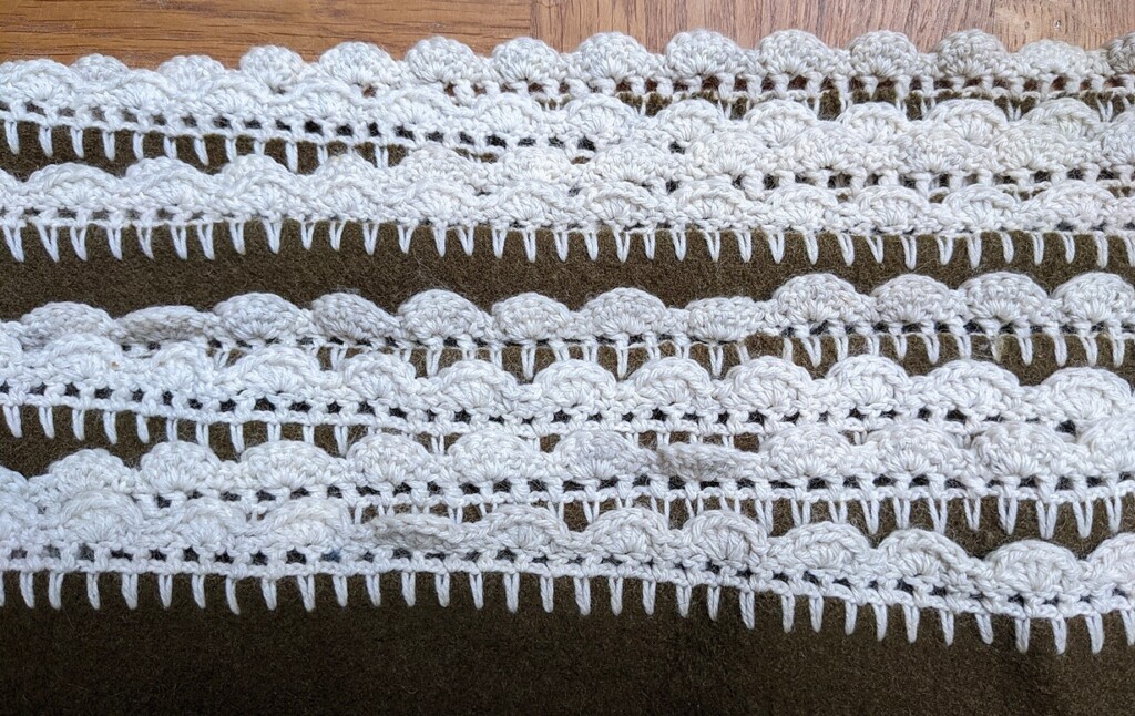 De oude deken die handwerktante lang geleden had omgehaakt ging op de weg-stapel. Wel jammer, want ik vond het altijd leuk om die deken te zien in het huis van m’n zus. Maar zelf wil ik hem ook niet, hoewel het dus een koude meimaand is. Toch voelt het wel raar…. handwerken die al zò lang in de familie zijn geweest doe je niet zomaar weg. Een foto maken helpt natuurlijk wel.