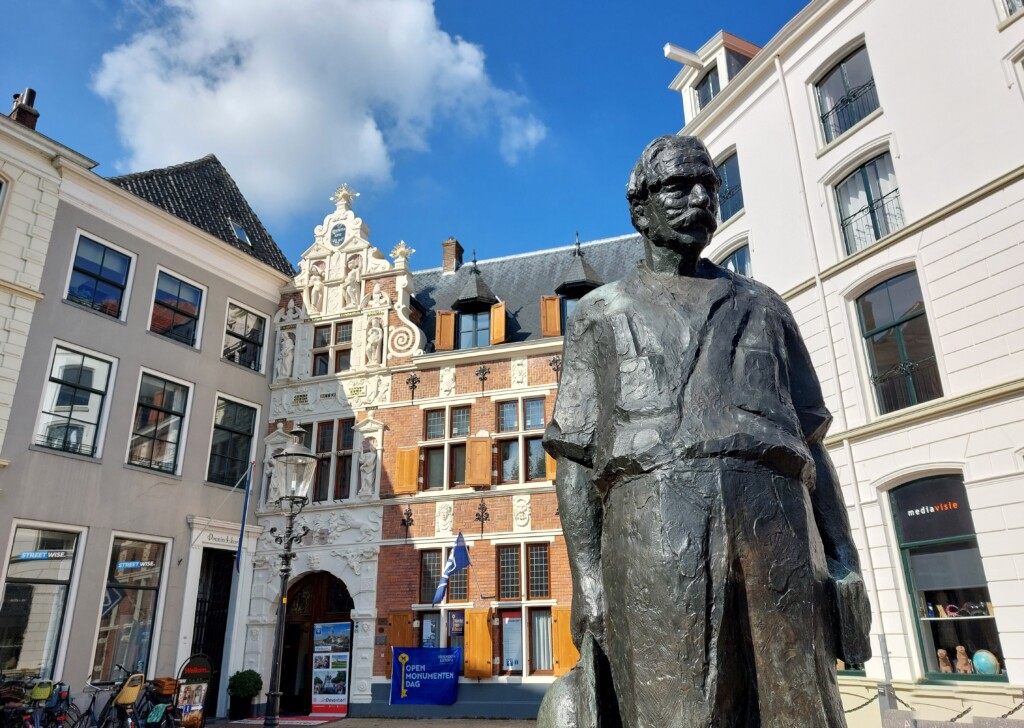 Veel was er te zien tijdens op Open Monumentendag, gebouwen waar je anders nooit komt, waren nu opengesteld. Ik was in Deventer, en bezocht mooie plekken. In een bijna-laatste blogje nog wat foto’s. Hier op de Brink, waar achter de zeer mooie gevel van het Penninckshuis een Doopsgezinde kerk schuilgaat. Hier heeft Albert Schweitzer nog op het orgel gespeeld. Zijn standbeeld draagt nog altijd uit: “Eerbied voor het leven”, waar hij mee bekend is geworden.