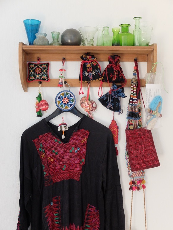 hier oud glas, staphorster stipwerk, en palestijns borduurwerk. Vanaf het allereerste begin heeft ze m’n blog gelezen dus al mijn spulletjes kent ze al, maar nu kon ik ook eens bij haar rondkijken.