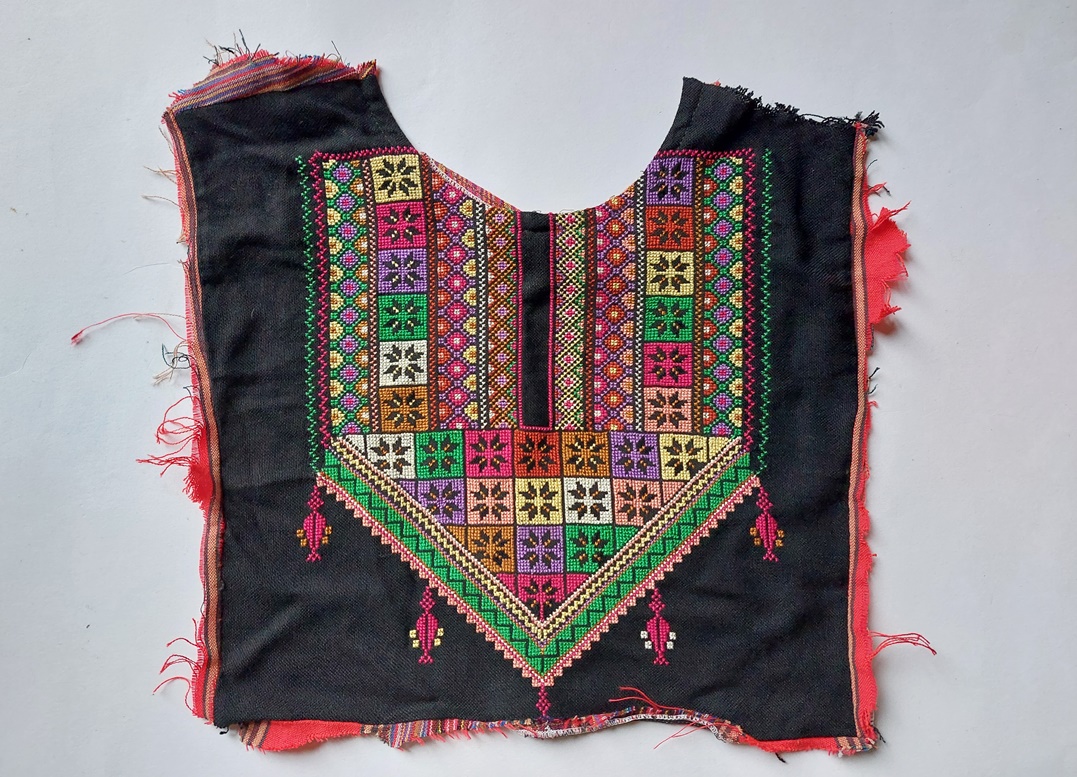 Bij een ander blogje, waarbij ik het bovenstukje van een Palestijnse jurk liet zien, schreef ik dat de waarde van een mens mede wordt benadrukt door kleding. Prachtig borduurwerk heeft eeuwenlang de identiteit van mensen in het Midden Oosten mede tot uiting gebracht.