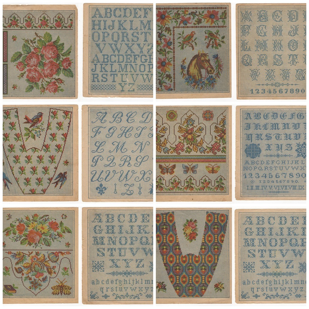 Spaar al jaren oude patronen én alfabetten om zelf mijn merklappen mee samen te stellen.
