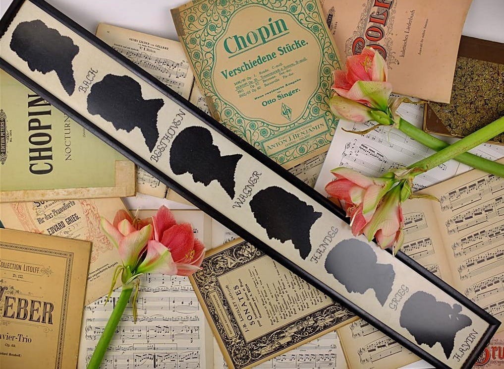 Silhouetten van de grote componisten: ik vroeg me af waar dat patroon uit zou zijn gekomen. Dit mooie schilderij is al eerder verkocht, maar de foto is mooi genoeg om nog eens te laten zien. Want ik heb nu het patroon gevonden dus als iemand deze mooie silhouetten nog eens wil borduren, dan kan dat. Het patroon staat in Ariadne oktober 1966, en gelukkig zit daar ook het werkblad nog in.
