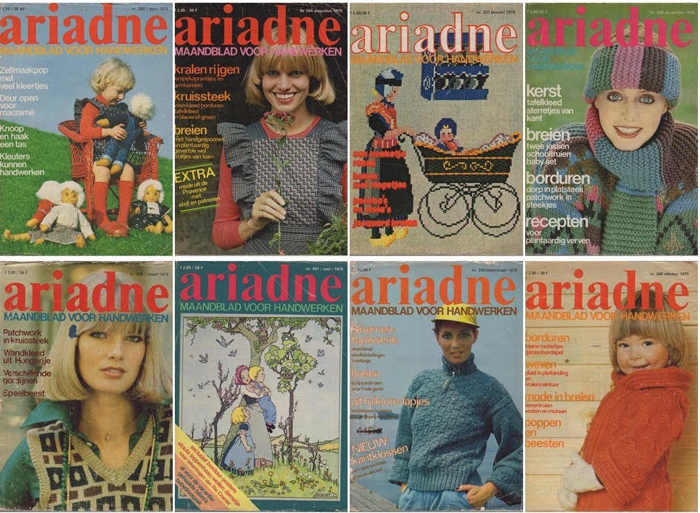 Veel mensen hebben ook nog herinneringen aan bepaalde patronen die ze vroeger maakten en nu graag nog eens willen maken. Misschien zijn dat patronen uit deze oude Ariadnes van 1975. Dit stapeltje is wel een beetje beduimeld want ze zijn door iemand anders ook al heel vaak doorgebladerd. Maar de patronen zijn nog heel goed bruikbaar!