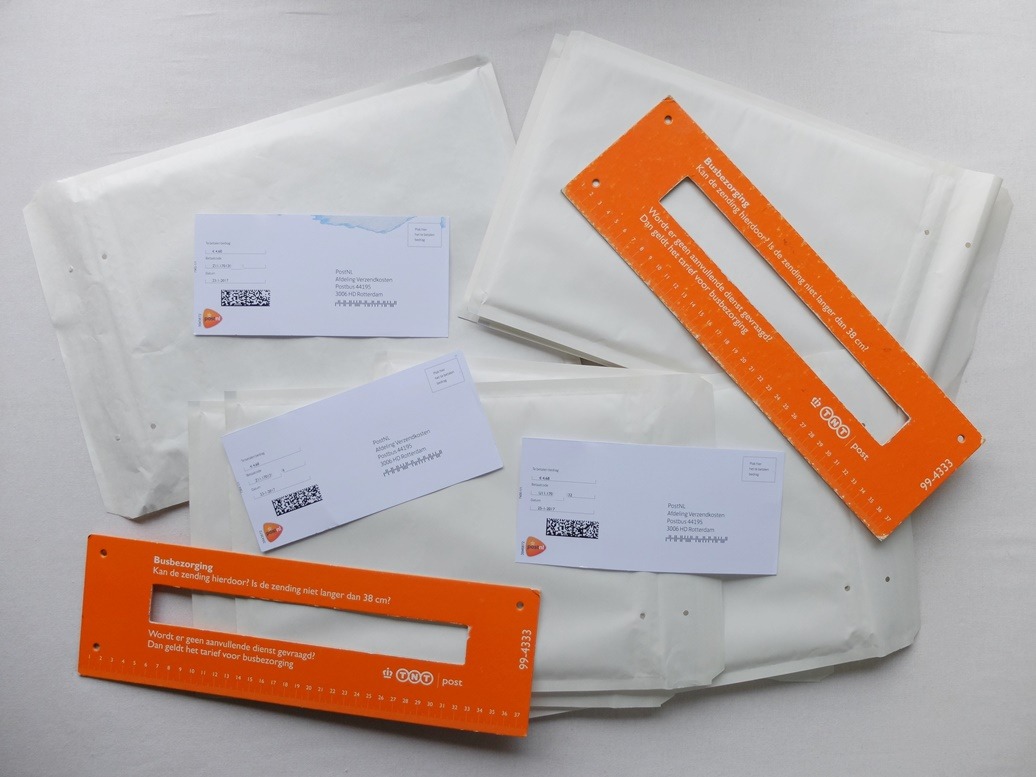 Over die brievengleuf in onze kartonnen doos nog even: je zou denken dat ik dan toch goed geoefend had voor mijn huidige werkzaamheden. Als kind wist ik al dat een brief niet te breed mag zijn want anders gaat de post mopperen. Maar nu krijg ik vele jaren later alsnòg met dat fenomeen te maken: een mopperende post. En dat doen ze niet vriendelijk verbaal, door mij erop te wijzen dat m’n envelop te breed was. Nee, dat doen ze door mij te bestoken met kaartjes waarop ik maar liefst vele euro’s porto bij moet plakken. Een soort strafport, omdat ik te weinig gefrankeerd zou hebben. Hun redenering is dat ze mijn brieven nu als pakketje hebben moeten bezorgen. Daar geloof ik niet veel van, want die brieven passen nog steeds goed door de gleuven. Alleen die zijflapjes steken wat uit. Tja, als je die ook gaat meerekenen in de toegestane breedte van de envelop dan is het nèt kiele kiele.