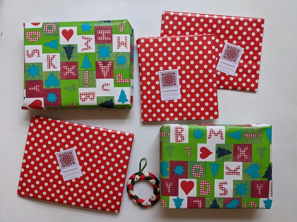 Bij de papierbak was iemand juist bezig om wat nieuwe rollen kerstpapier weg te gooien. Die rollen mocht ik wel en daarmee pakte ik vandaag de eerste bestellingen van het jaar in. Ziet er gezellig uit zo. Ik moet me een beetje behelpen, want het papier wat ik normaal gebruik om boeken en tijdschriften in te pakken begint op te raken. Dus daar moet ik zuinig mee doen, nu de lockdown wordt verlengd en ik voorlopig niks bij kan kopen. Dus die extra rollen waren welkom, en ook lekker ’tweedehands’.