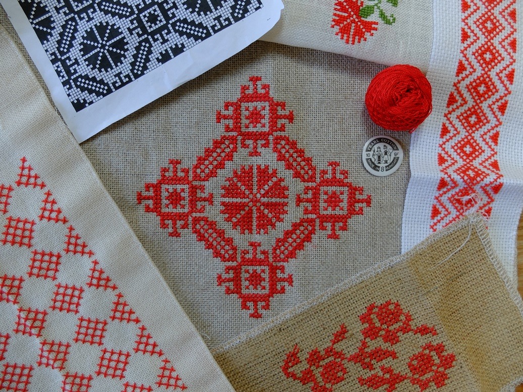 Het rode borduurwerkje vordert gestaag, en ik probeer het systematisch op te bouwen. En telkens een foto te maken als het motief weer wat groter is geworden. Ik borduur graag met rood, maar daar heb je dan wel veel borduurgaren voor nodig. Dat hoeft niet altijd splijtzijde te zijn. Borduurgaren is er ook op een bolletje. De dikte is ongeveer hetzelfde als vier draadjes splijtzijde. Misschien een tip voor andere borduursters, om op zoek te gaan naar zulke bolletjes. Ze heten ‘parel katoen’ (of pearl of perlé). Dit is gemerceriseerde katoen, die glad, glanzend en sterk is gemaakt door behandeling met alkalische zuur/soda-oplossing. Dit garen borduurt heel fijn.