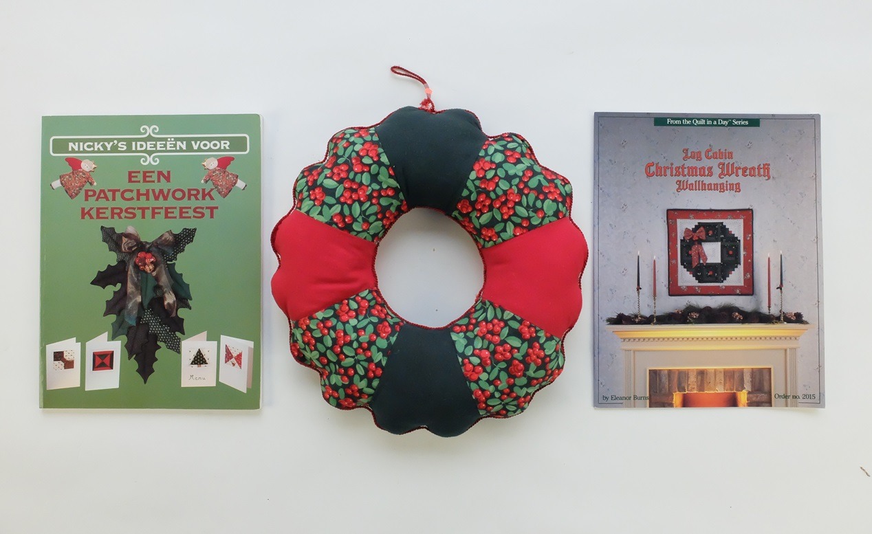 Ik denk dat het bij mijn handwerkvriendin ook zo ging. Jarenlang had ze in de kersttijd een patchwork-versiering aan haar deur hangen, maar op een gegeven moment stopte ze daar mee. Ook ouderwets bevonden, denk ik. Nu vond ik het boek “Een patchwork kerstfeest” waar ze die waarschijnlijk (in de negentiger jaren) uit maakte. Tòch leuk om weer terug te zien!