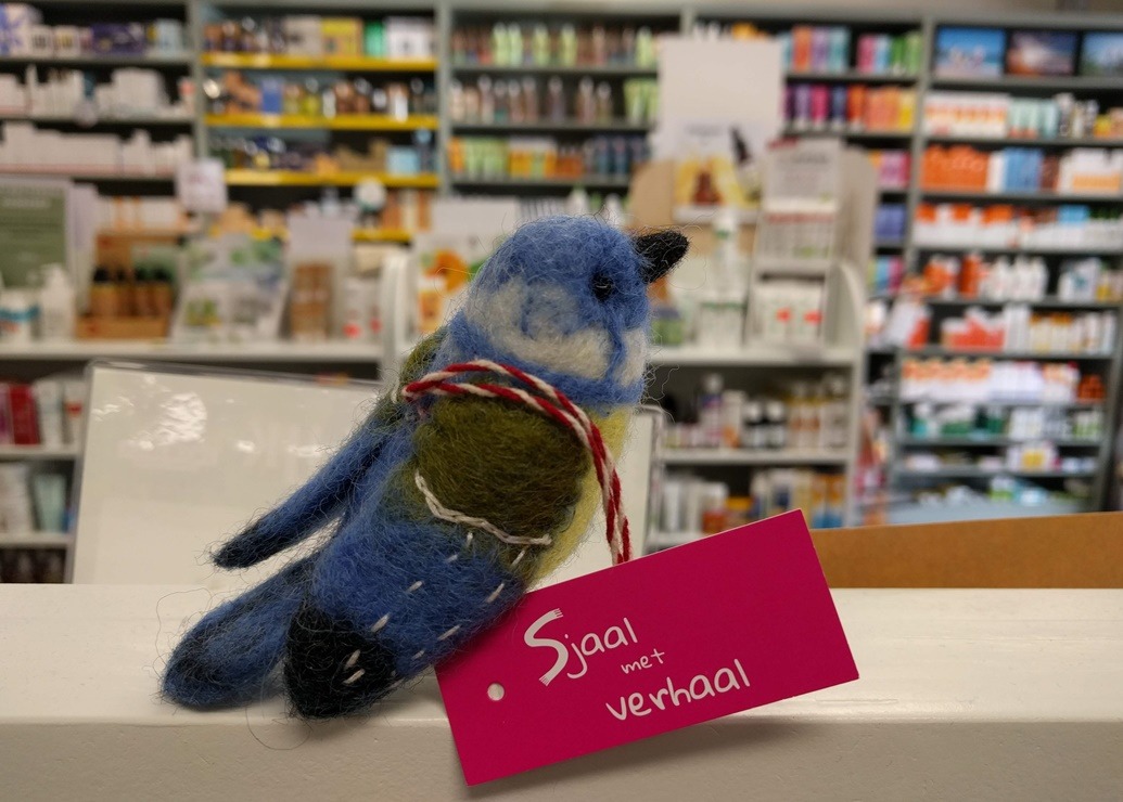 Eén van mijn favoriete winkels is De Gezonde Zaak, en alleen al die naam bevestigt dat het een goed idee is om daar af en toe naar toe te gaan. Dit keer had ik de gelegenheid om met m’n dochter daar even binnen te lopen en dan is er altijd wel iets waar je je gezondheid mee kunt helpen of waar je oog op valt. Nu viel mijn oog op een pimpelmeesje van vilt. Gelijk dacht ik aan het gebreide pimpelmeesje wat in de begintijd van Pinterest een hit was: dat kwam je op heel veel borden tegen en ook ik bewaarde het met het idee dat ik dat nog wel eens zou willen breien. Maar dat kwam er nooit van, en nu vond ik dit pimpelmeesje van vilt en die vond ik mooi.