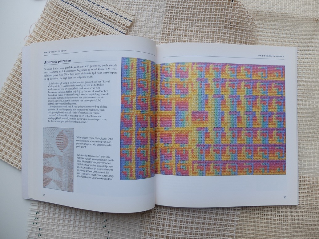 Voorbeelden van op stramien geborduurde werkstukken en hoe deze tot stand zijn gekomen.” (overgenomen van de achterkant)