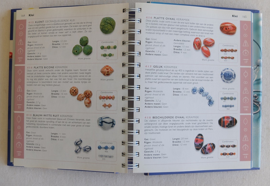 Hoofdstukken over kralen van Glas, Kristal, Halfedelstenen en parels, Edele metalen, Onedele metalen, Klei, Plastic, Hout, Andere natuurlijke materialen, Overige materialen, Fournituren