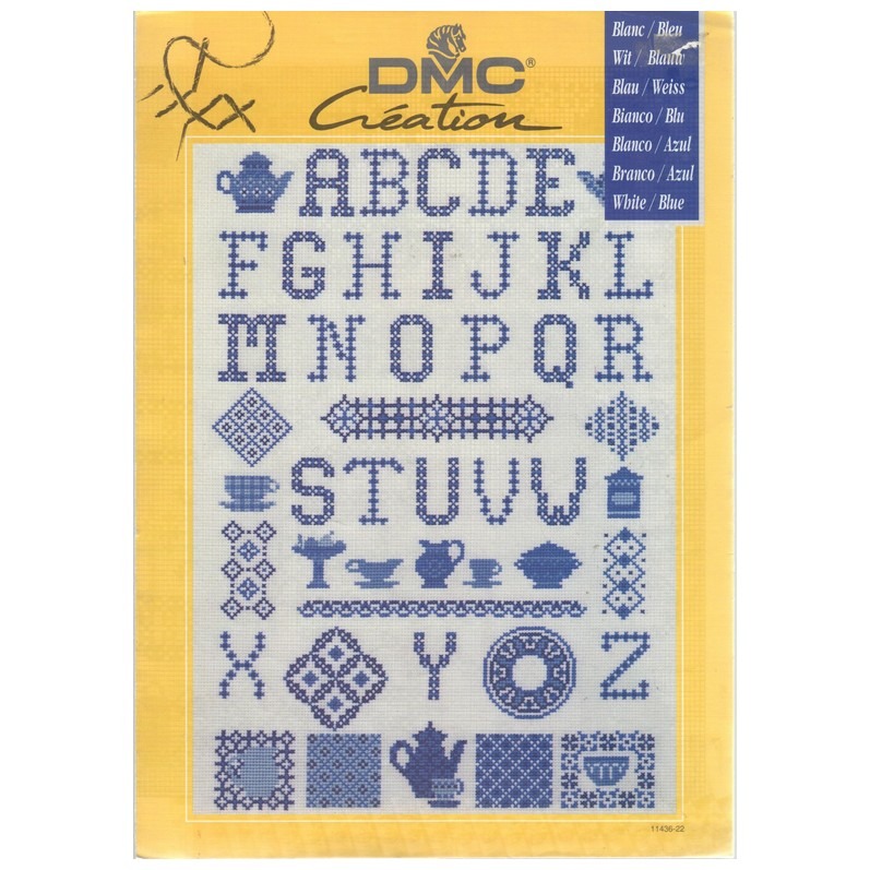 Binnenin staan leuke borduurmotiefjes in blauw, en achterop nog een alfabet.
