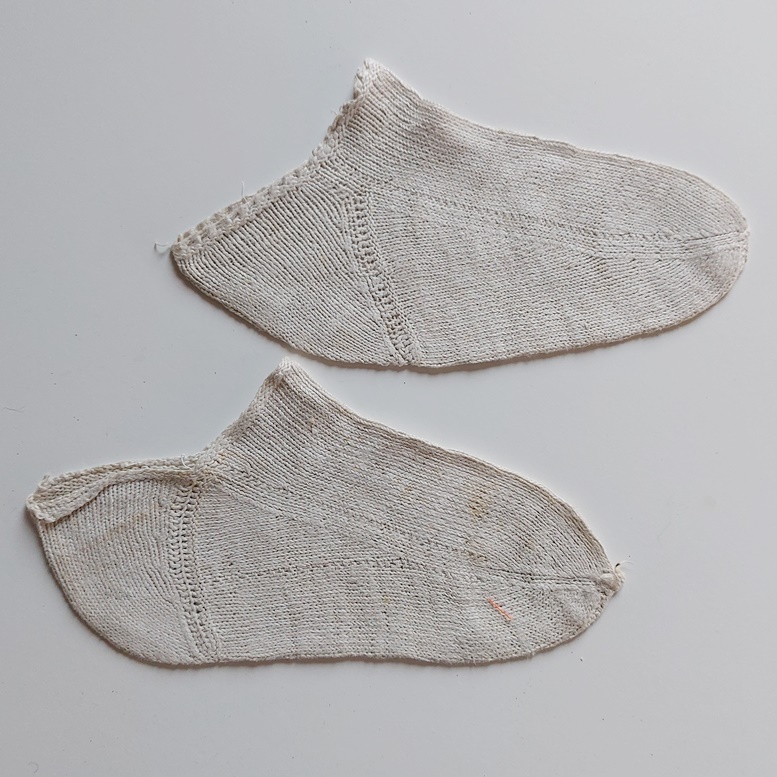 Waarschijnlijk waren ze niet af, maar het is leuker om te denken dat het sneaker-sokjes waren avant la lettre